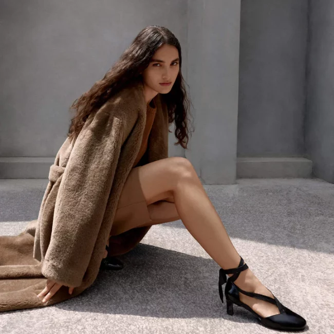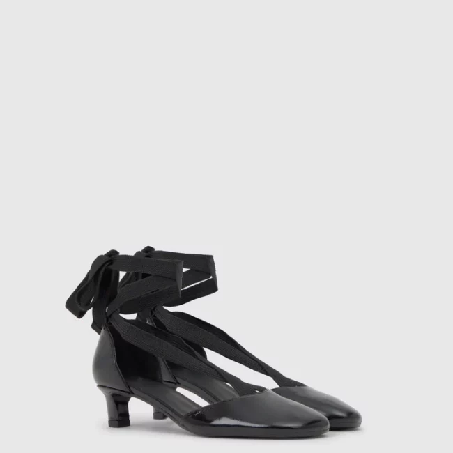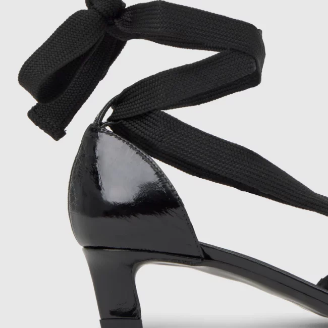Zapato tacón Aline en charol combinado con cintas de tela, plantilla acolchada y tacón kitten de 4cm.