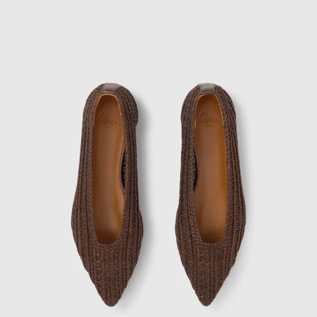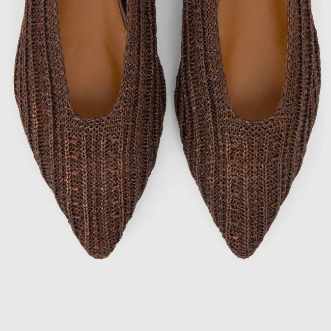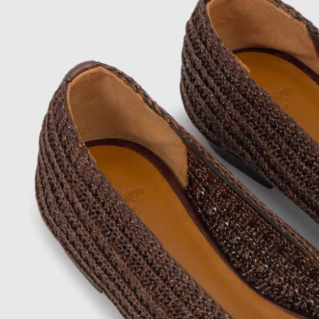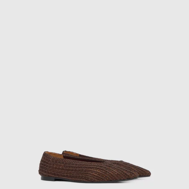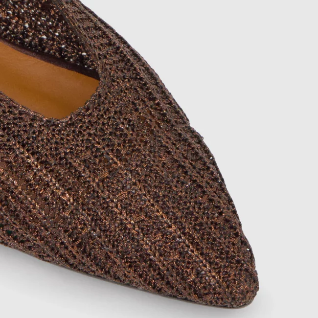 Bailarina plana Bassi en punto de lurex con acabado metalizado, plantilla acolchada y suela de cuerolite.