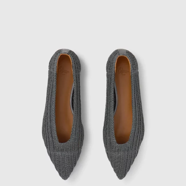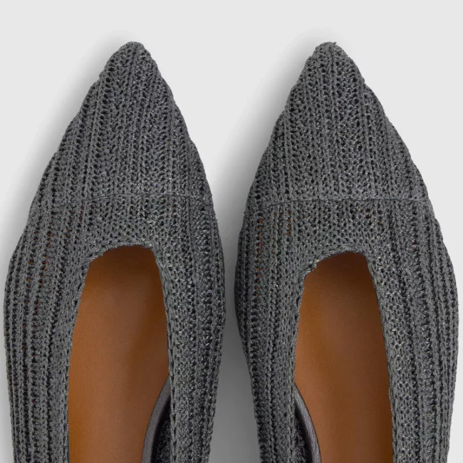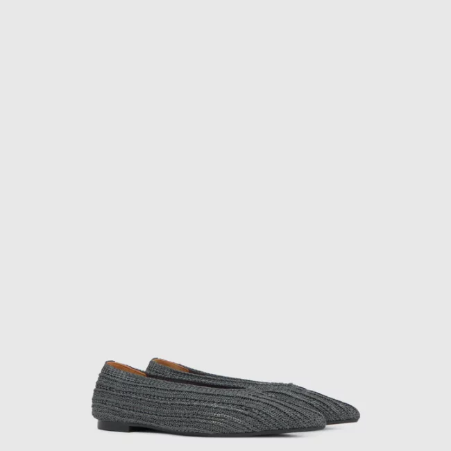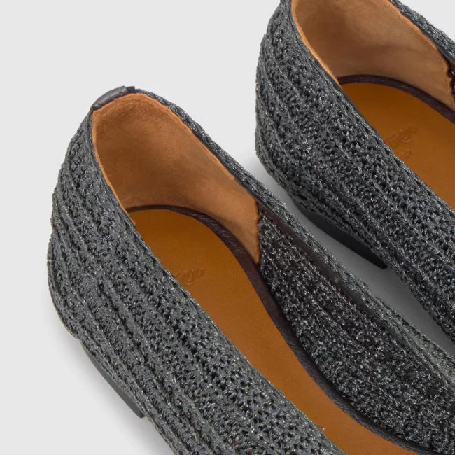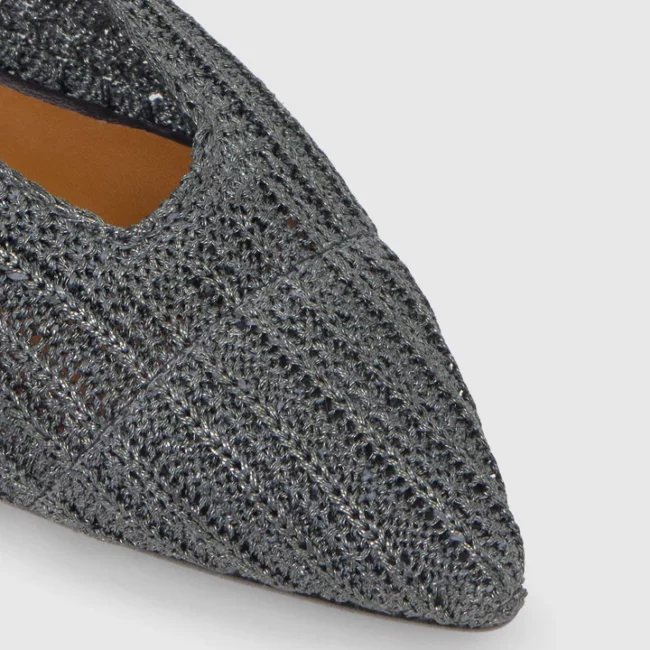 Bailarina plana Bassi en punto de lurex con acabado metalizado, plantilla acolchada y suela de cuerolite.