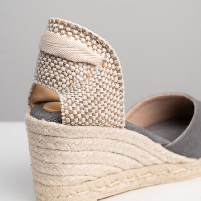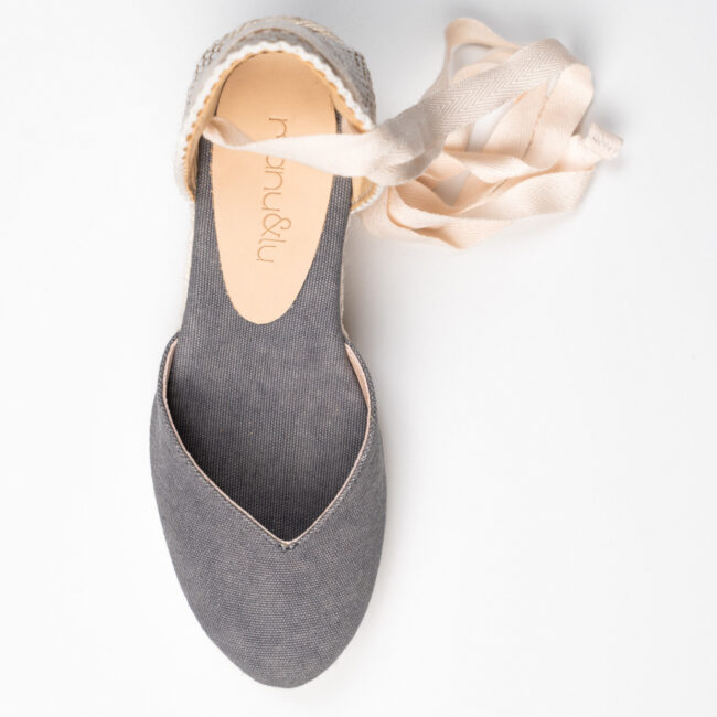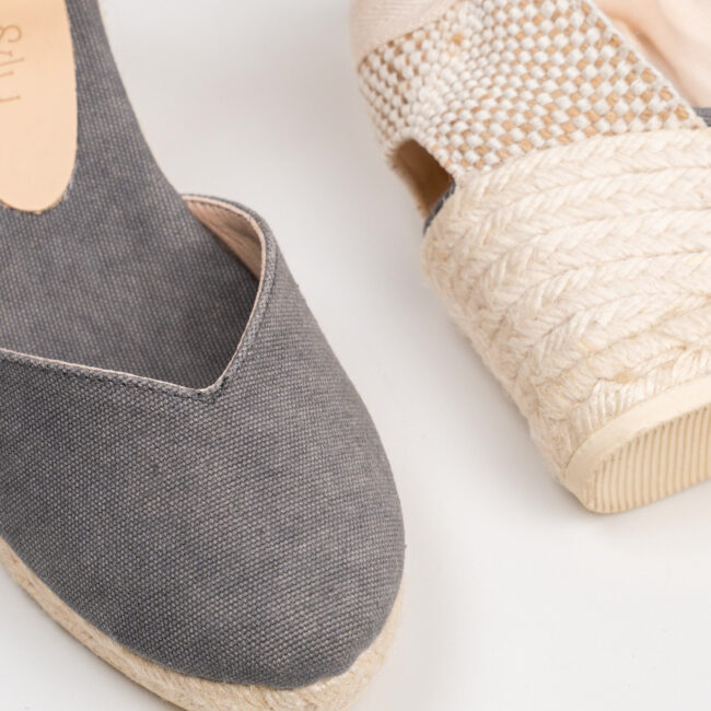Alpargata de cintas fabricada en lona 100% natural color Gris. Escote en v, cuña de 7 cm y plataforma de 2cm. Interior forrado en piel. Plantilla de doble gel forrada en lona con una lágrima de piel en tono natural. Lo que más nos gusta de Daniela es su corte en v, que favorece a todo el mundo, así como el estilo que aporta con vestidos y shorts. Talla fiel a la habitual. Diseñado y fabricado integramente en España por los mejores artesanos con técnicas tradicionales.