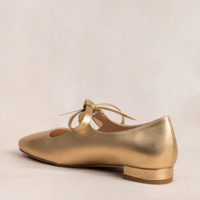 Bailarina con lazada fabricada en piel color Oro. Presenta un tacón de 2cm. El lazo va atado a una tira elástica para facilitar su calce. Forro interior de piel y plantillas de doble gel, para mayor comodidad.   Lo que más nos gusta es el estilo romántico que aporta a nuestros looks.   Diseñado y fabricado integramente en España.