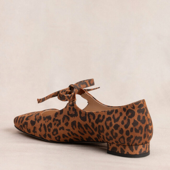 Bailarina con lazada fabricada en piel estampado Leopardo. Presenta un tacón de 2cm. El lazo va atado a una tira elástica para facilitar su calce. Forro interior de piel y plantillas de doble gel, para mayor comodidad.