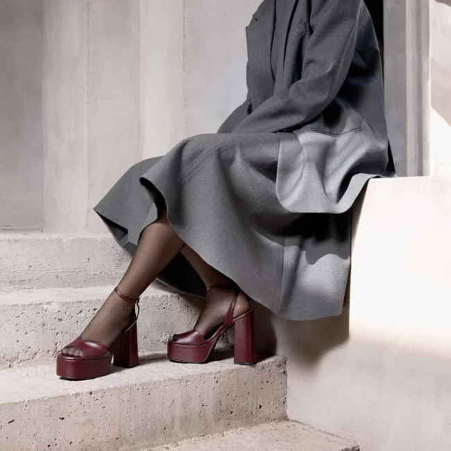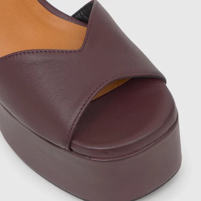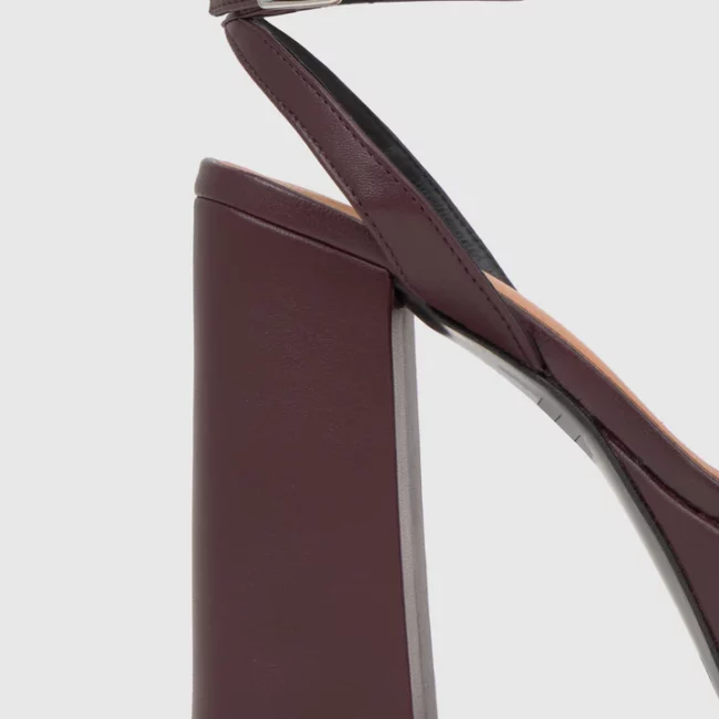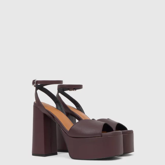 Sandalia Fibi en napa con cierre de hebilla, plantilla acolchada y tacón de 13cm con plataforma a juego.