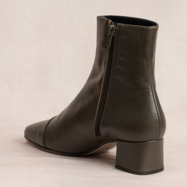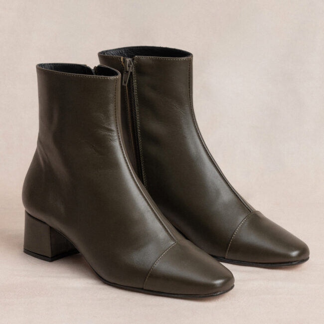 Botín de caña baja con un tacón de 4,5cm.Elaborado en piel color Bosque.Cuenta con una plantilla de doble gel que ofrece una comodidad extra. Lo que más nos gusta de este modelo es su color atemporal. Diseñado y fabricado integramente en España.