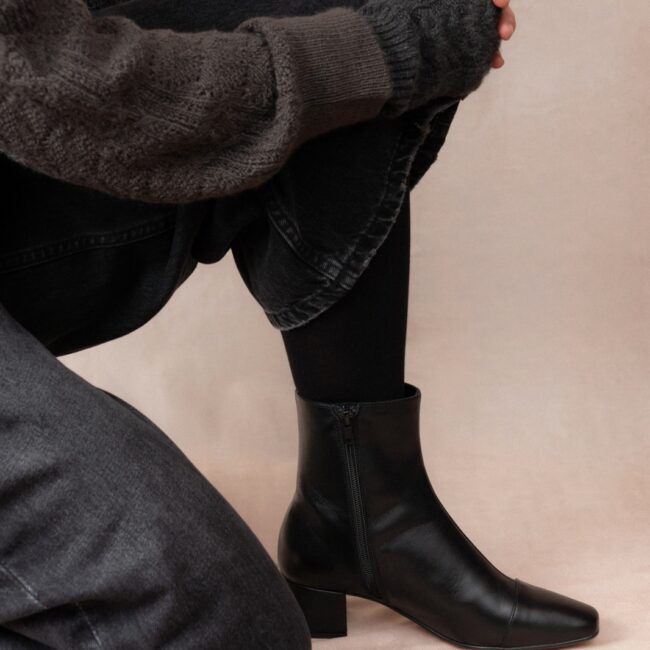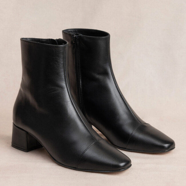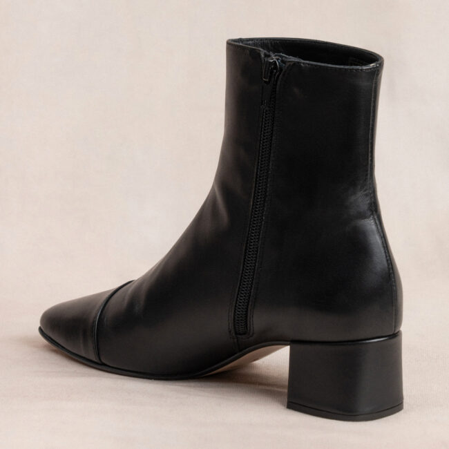Botín de caña baja con un tacón de 4,5cm.Elaborado en piel color Negro.Cuenta con una plantilla de doble gel que ofrece una comodidad extra.