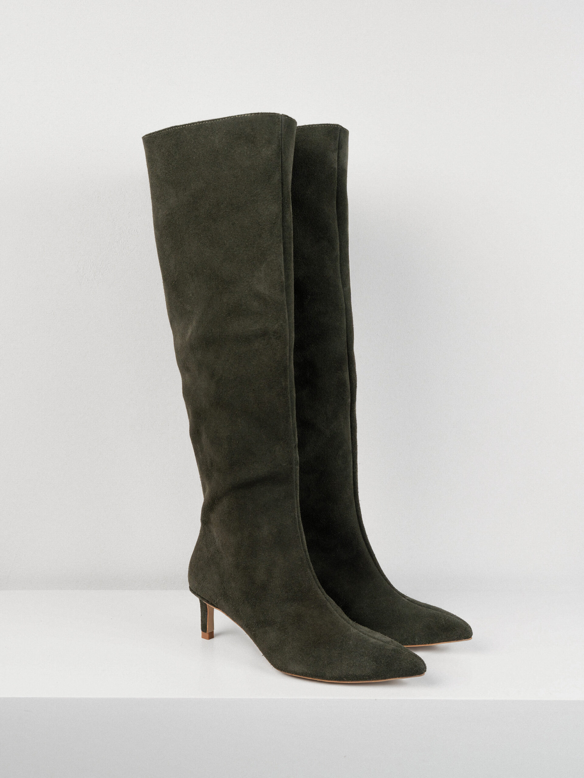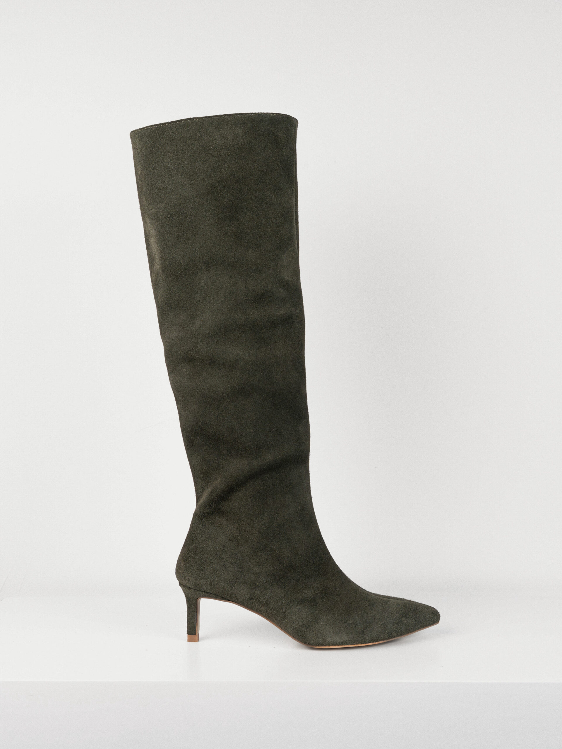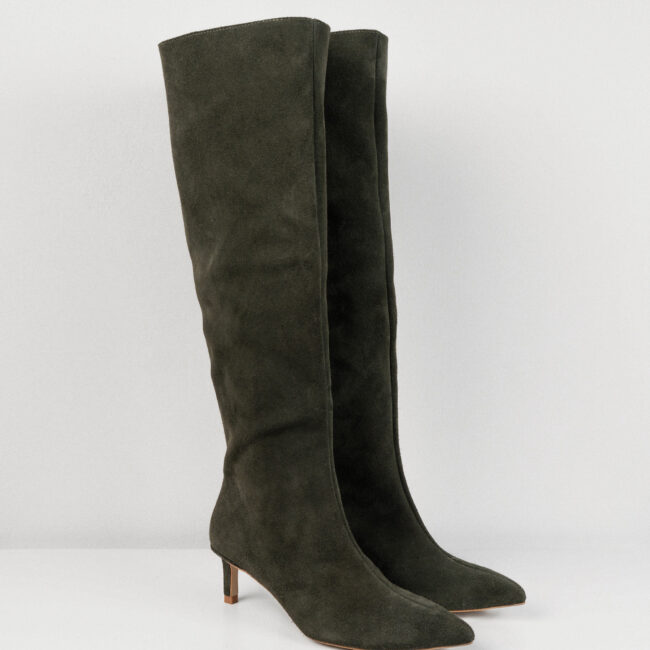 Bota de caña alta elaborada en serraje forro de piel plantilla de doble gel que la hace una bota super comida para tu día a día