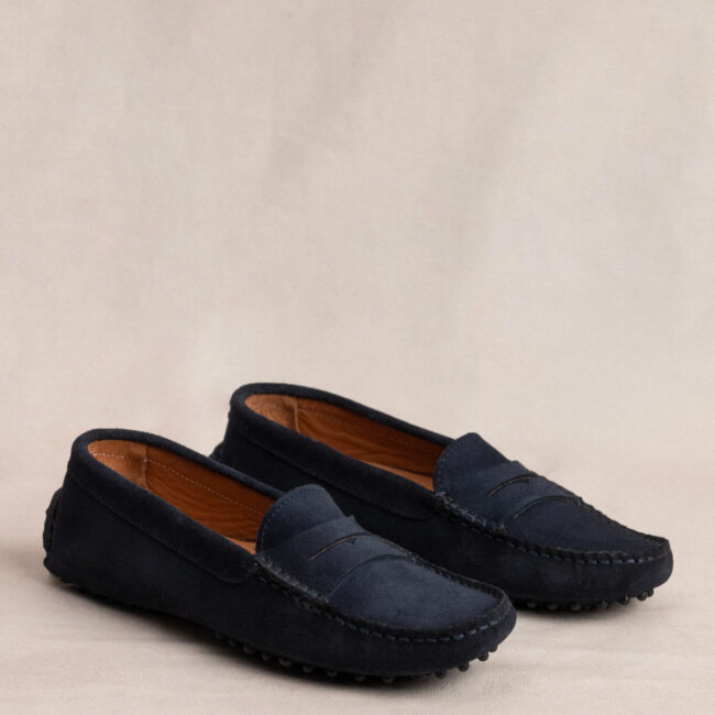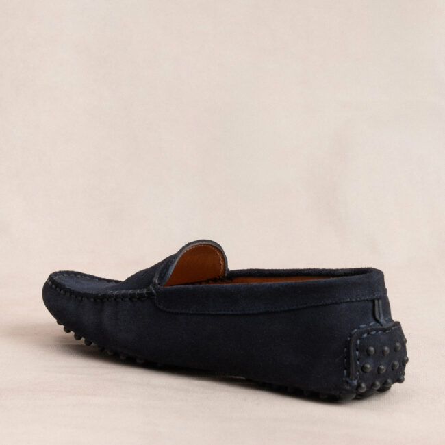 Mocasines en ante Azul Marino tratado para el agua. Presenta interior forrado de piel y suelo de gomitas. Plantilla de doble gel para una mayor comodidad.   Lo que más nos gusta es el estilo náutico que aportarán a tus looks.   Diseñado y fabricado integramente en España.