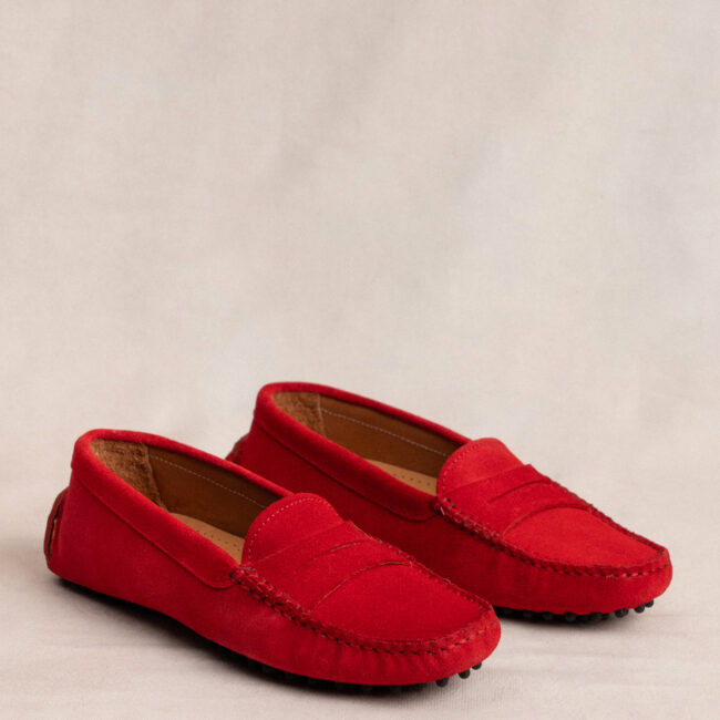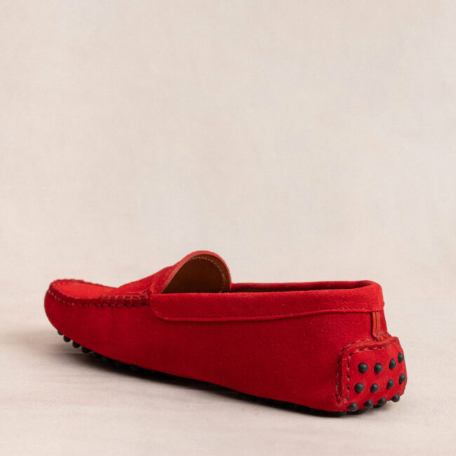 Mocasines en ante Rojo tratado para el agua. Presenta interior forrado de piel y suelo de gomitas. Plantilla de doble gel para una mayor comodidad.