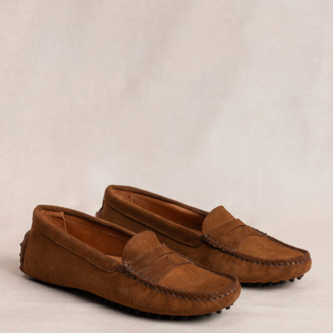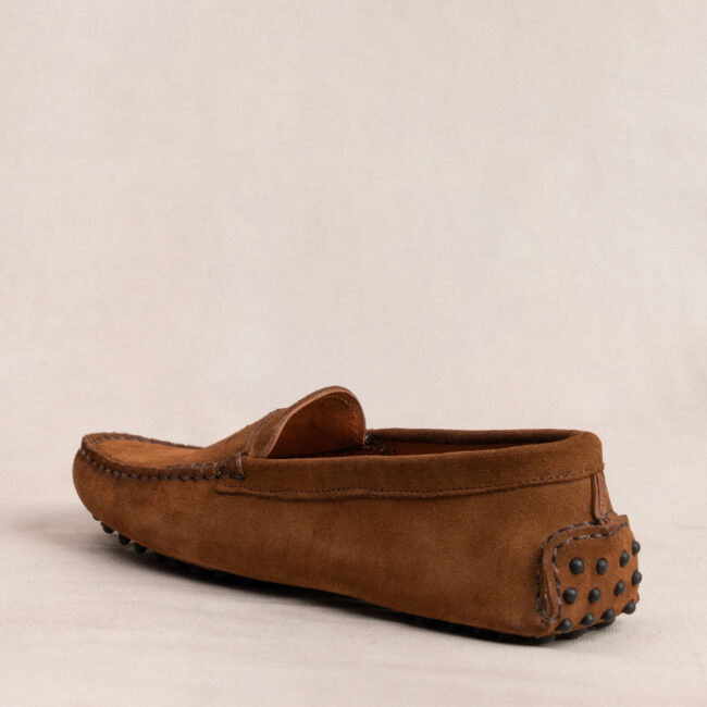 Mocasines en ante Caramelo tratado para el agua. Presenta interior forrado de piel y suelo de gomitas. Plantilla de doble gel para una mayor comodidad.