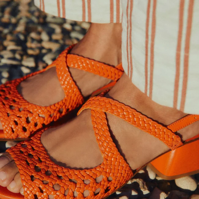 Uga es un clásico de Naguisa, una sandalia con trenzado de rejilla y tiras cruzadas en el empeine. Ajusta al talón con una hebilla. Cortes de piel de cabra y hecho a mano por artesanos. Forro de piel de cabra y la planta de piel vacuna natural para dejar transpirar mejor tu pie. Suela de cuero. La altura de tacón es de 4 cm. El tacón es ancho para mayor comodidad.